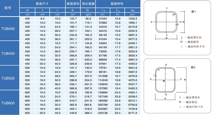 Specification and section peformance of some high frequency weld square hollow section |